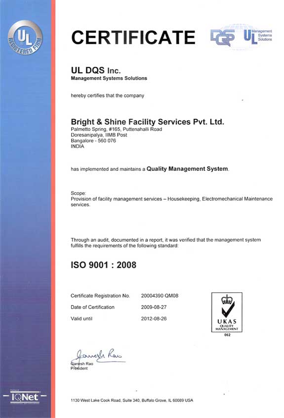 All rights reserved © 2009 - Bright & Shine Facility Services Pvt. Ltd.